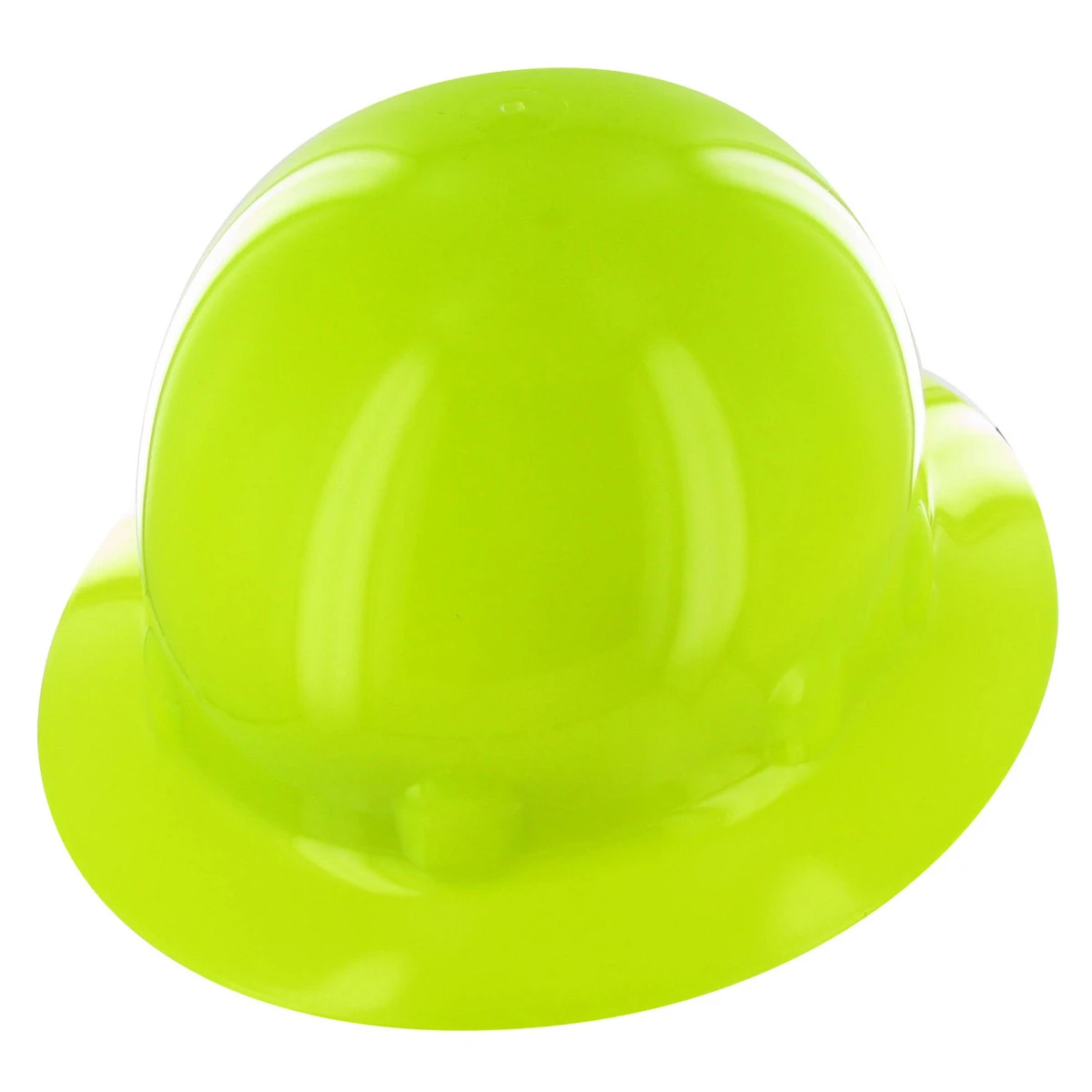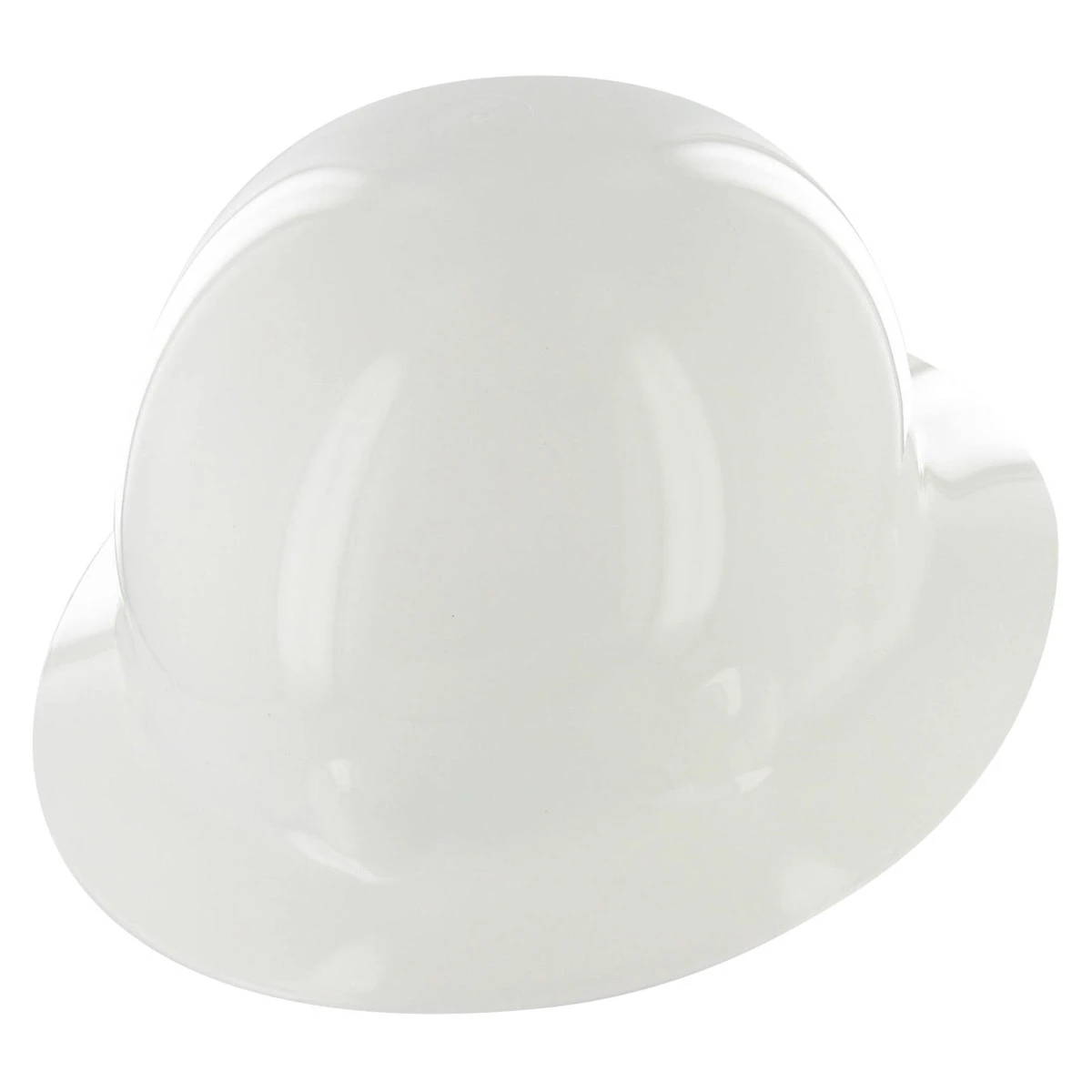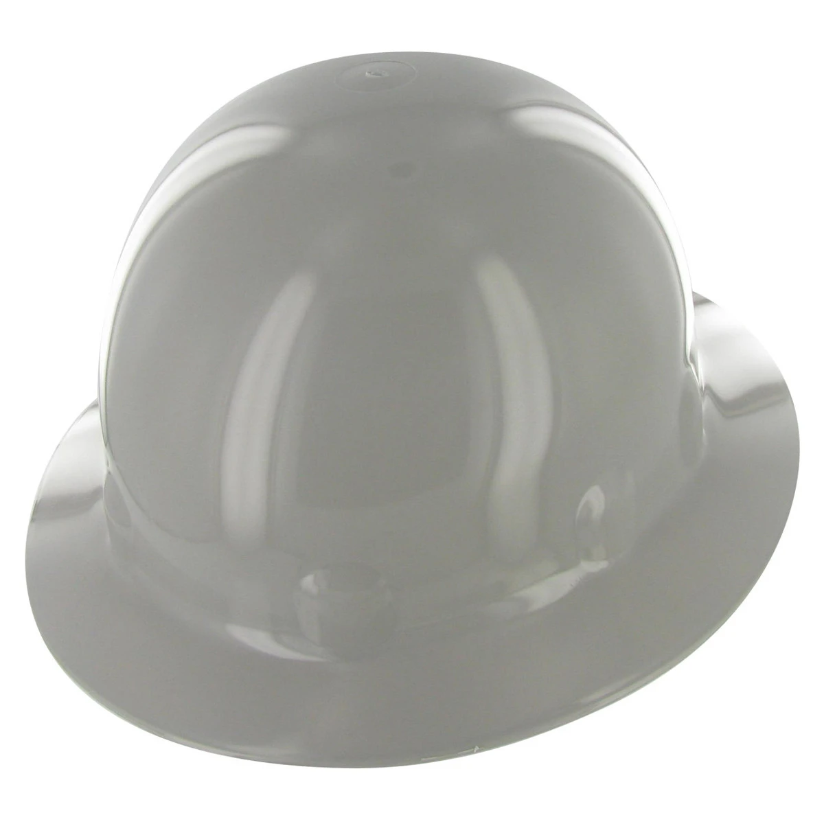 The Fibre Metal SuperEight Full Brim Hard Hat with Ratchet Suspension (E1RW) SuperEight® impact energy control system that dissipates force by reducing it to smaller increments and increases protective performance. Hat features smooth crown design that contains a technically advanced suspension with 8 load bearing points to stabilize and balance the hat. It features full brim that adds an extra margin of protection from hazardous substances falling onto the neck and shoulders. Thermoplastic hat comes fully assembled and features adjustable non-slip/non-strip ratchet headgear for ultimate comfort. It is SEI certified to meet ANSI Z89.1-2003 Type I, Class E, G and C standards.