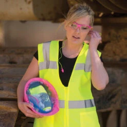 The ERB Safety Women’s High-Vis Fitted Safety Vest (S720) is a class 2 vest that conforms to ANSI/ISEA 107 standards. This high-vis, fitted safety vest is made of 100% polyester tricot and features repositioned tape, a contoured waist, and side slits.
