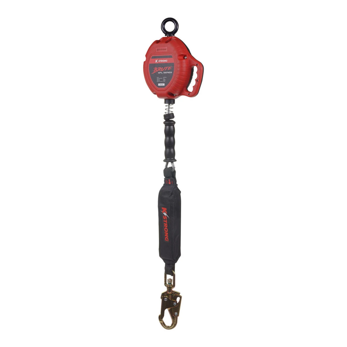 KStrong® BRUTE™ 18’ Galvanized Wire Cable SRL-LE (ANSI Leading Edge Rated) with High Impact Strength Polymer Housing with Built-in Handle, swivel eye at anchorage end, other end with load indicator swivel snap hook. Includes one (1) installation carabiner and one (1) tagline AFZ830025 (ANSI).