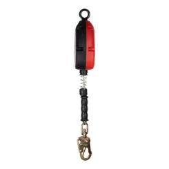KStrong® BRUTE™ 30’ Galvanized Steel Wire Cable SRL with High Impact Strength Polymer Housing with Built-in Handle, swivel eye at anchorage end, other end with load indicator swivel snap hook. Includes one (1) installation carabiner and one (1) tagline AFZ830050 (ANSI)