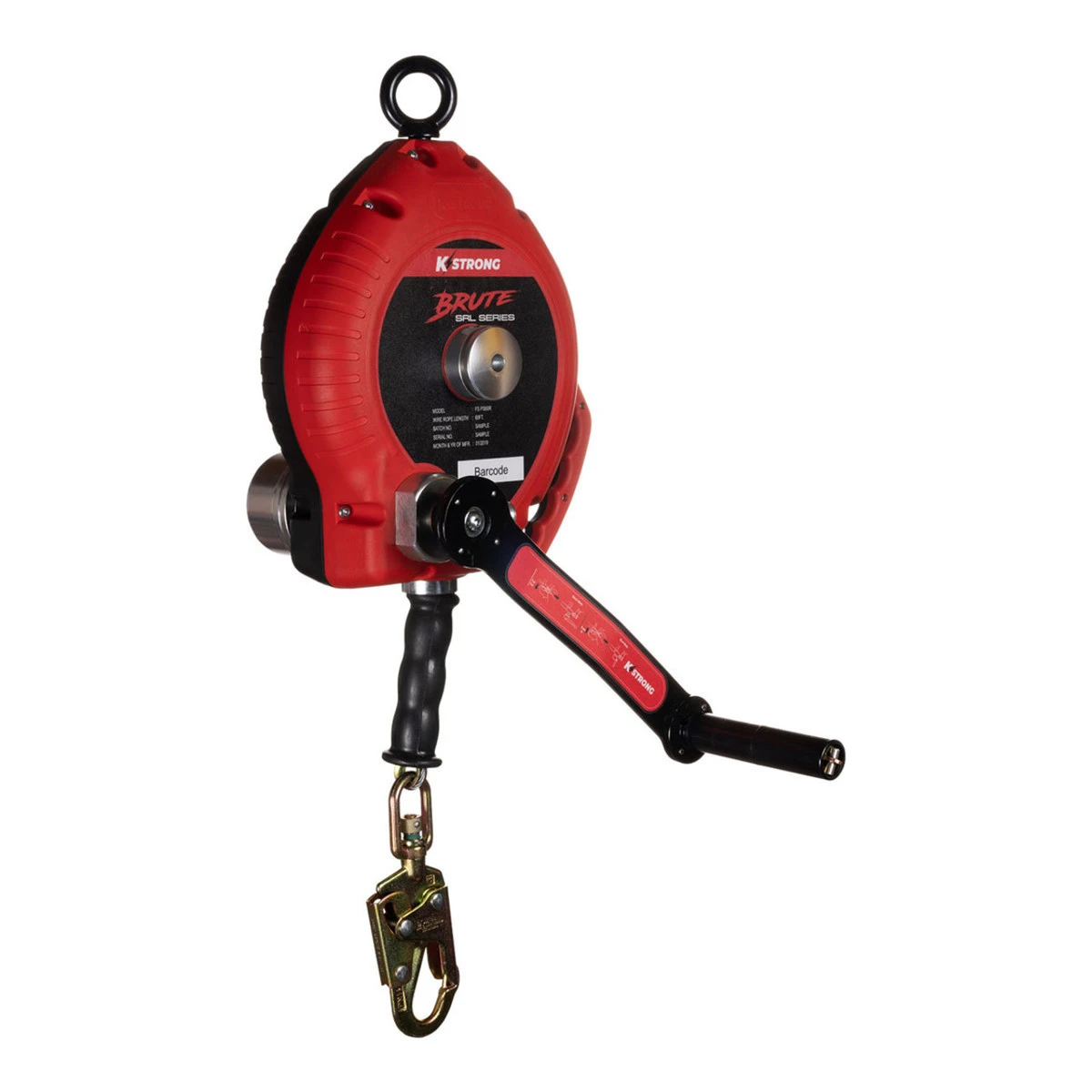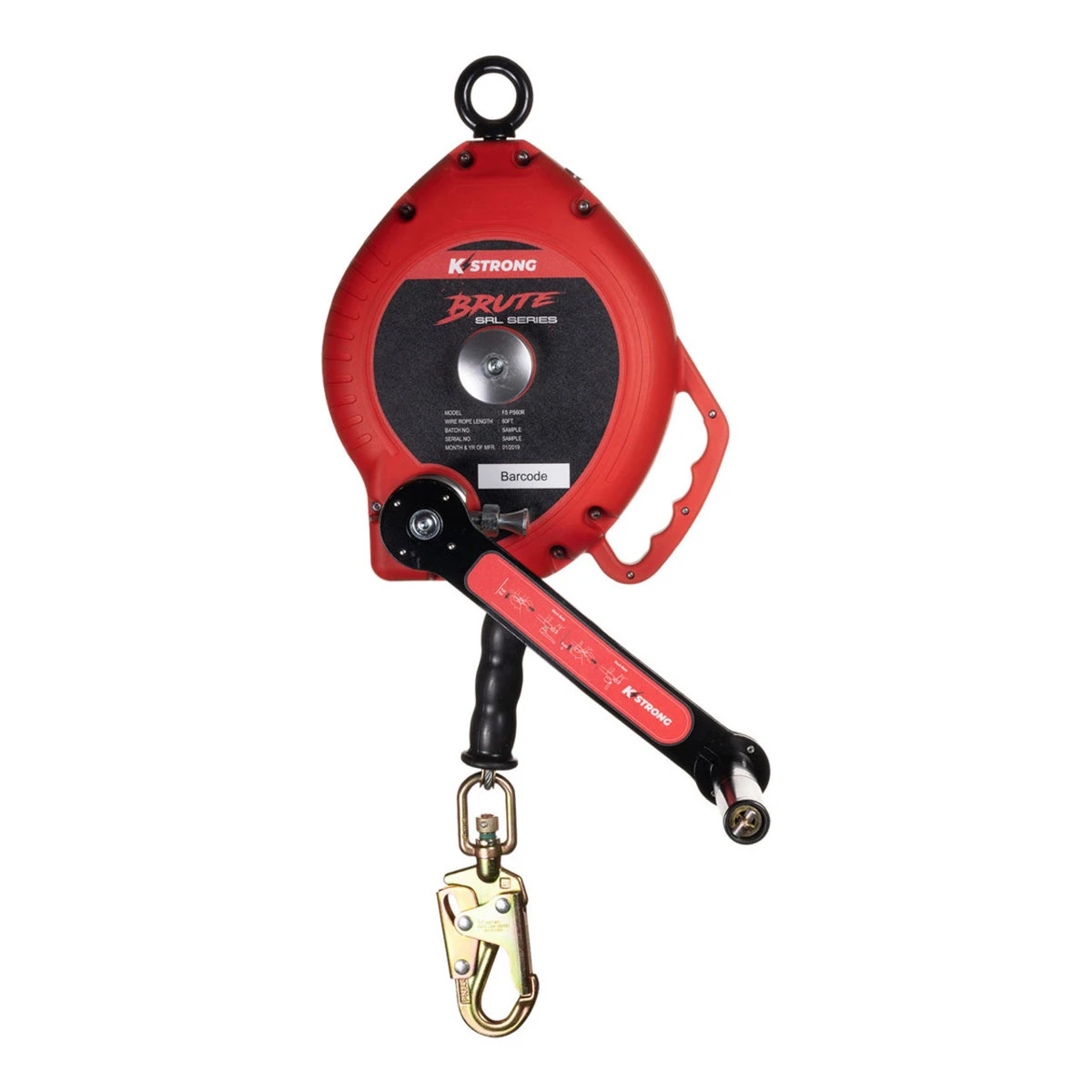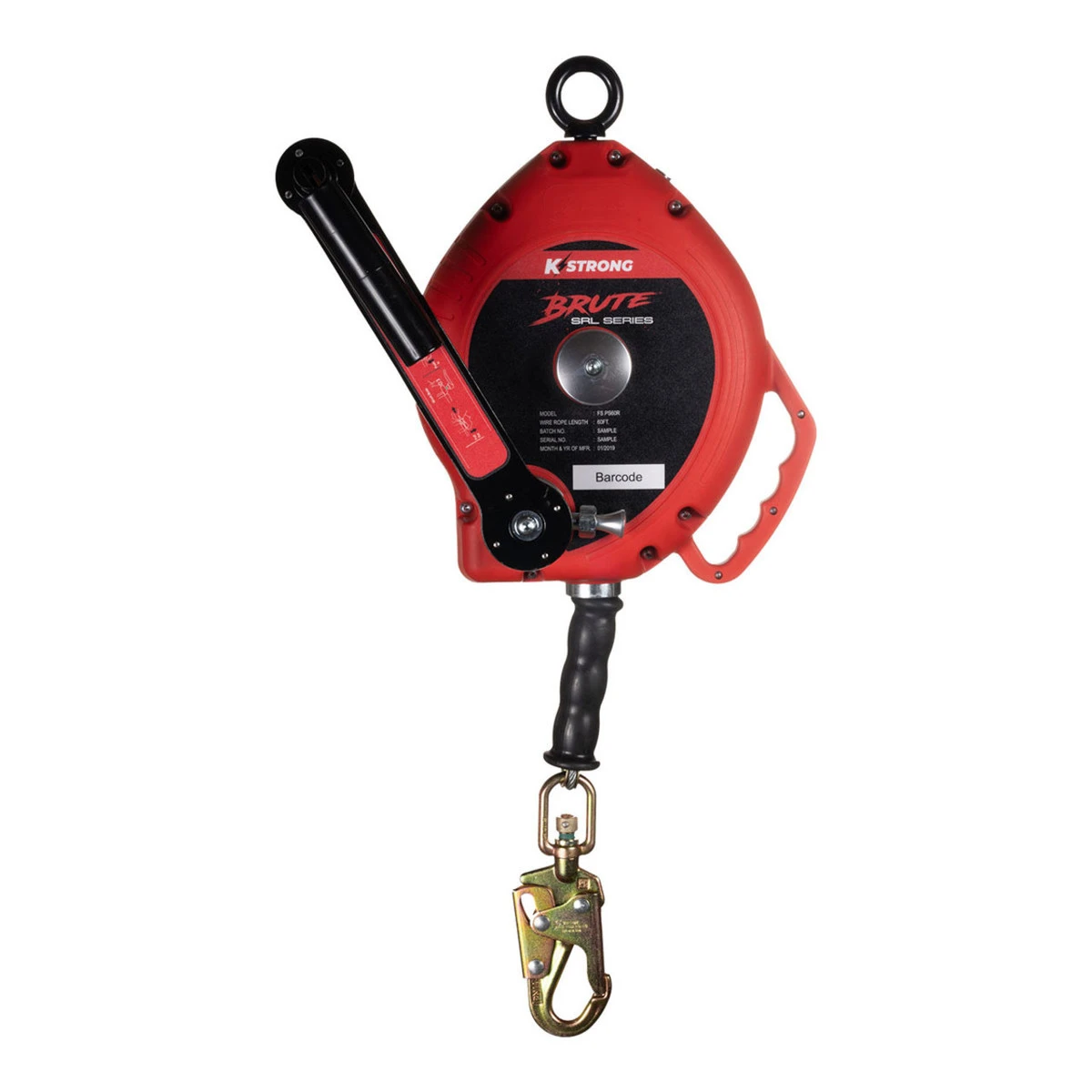 KStrong® BRUTE™ 60′ Wire Cable 3-Way Rescue Retrieval SRL-R with swivel eye at anchorage end, other end with load indicator swivel locking snap hook. Includes one (1) installation carabiner and one (1) tagline (ANSI)