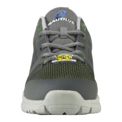 The Nautilus Zephyr brings unmatched style to athletic safety shoes! Featuring a gray and bright green speckled design, these lightweight work shoes are engineered for all-day comfort in light to medium work environments. The Zephyr comes equipped with alloy safety toe caps and a breathable, durable upper made from microfiber and leather. Additionally, the Zephyr features removable static dissipative (SD10) comfort insoles with built-in arch support, and slip-resistant heels, making these shoes ideal for work on the factory floor.