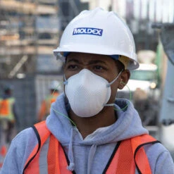 These Moldex 2 strap respirators feature a Dura-mesh® shell which protects the filter media so that it stays cleaner-looking longer. Shell resists collapsing, even in heat and humidity. Softspun® lining gives added comfort and durability. Contour molded nose bridge with a soft foam nose cushion provides the wearer an easy, comfortable fit. Meets heat and flame resistance in accordance with ANSI/ISEA 110-2003 Section7.11.1