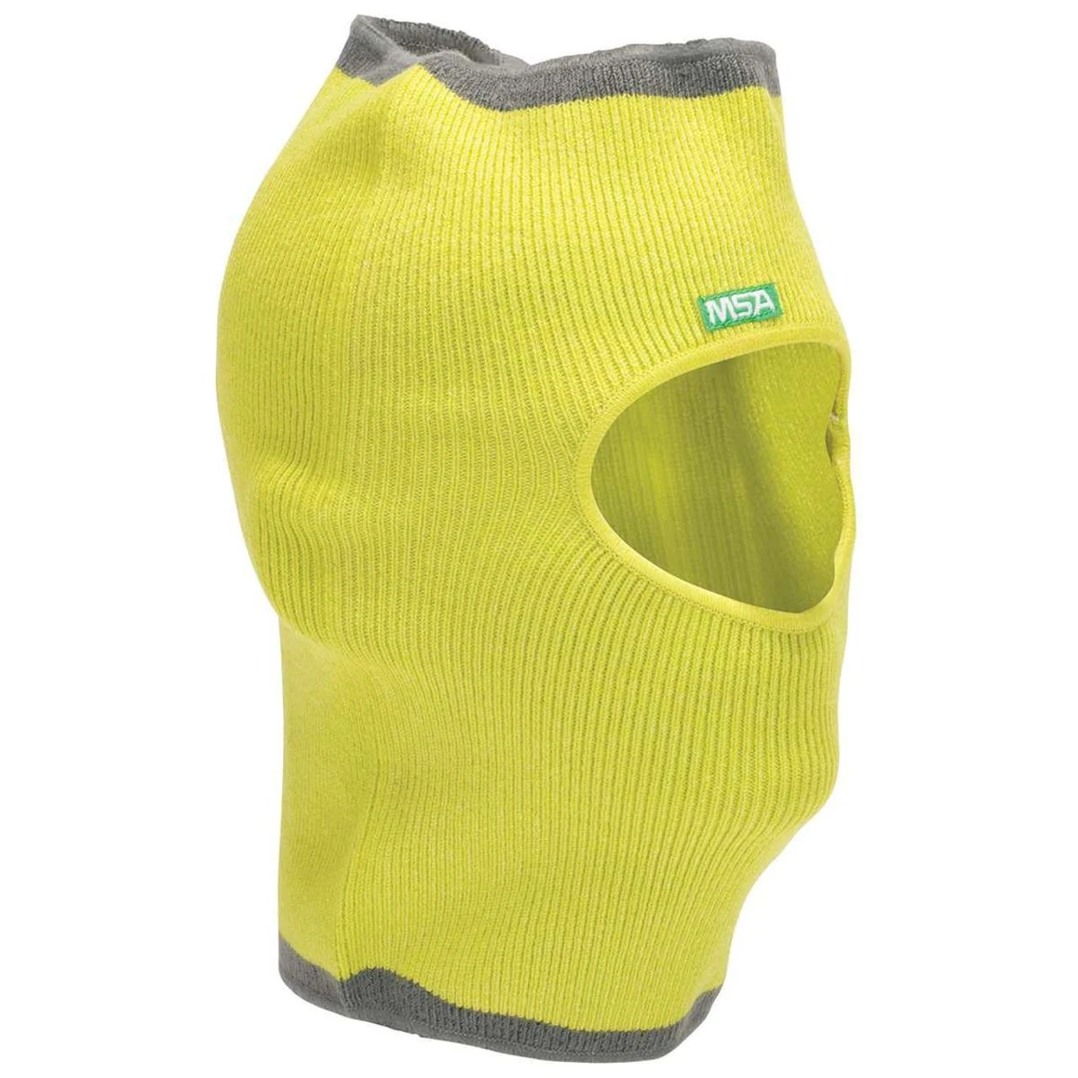 The MSA V-Gard Value Winter Liner (10118418) provides excellent protection against cold with maximum economy. 100% acrylic bright yellow-green for greater visibility. Full face tube mounts under or over brim of MSA caps or hats, covering ears, mouth, cheeks, and neck. Extended nape and wraparound collar for tucking into coat/shirt.