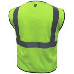The OccuNomix ANSI Public Safety Fire Safety Vest (LUX-PSF) is made of 100% ANSI polyester tricot fabric with 3M™ Scotchlite™ reflective material that is great during daylight and low-light conditions. There are 2 front logos and 1 back logo on reflective patches that state “Fire”. Pockets: 1 clear badge chest, 1 radio, and 2 microphone tabs.