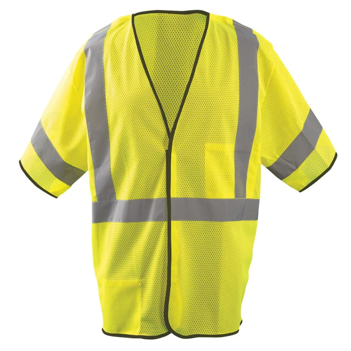 The Occunomix Class 3 Breakaway Safety Vest – LUX-HSGCB was made to protect yourself from dangerous snags with a 5-point breakaway design. Each safety vest is Class 3 ANSI compliant and is made of 100% ANSI polyester mesh. There is a velcro closure in the front and 2 inner pockets.