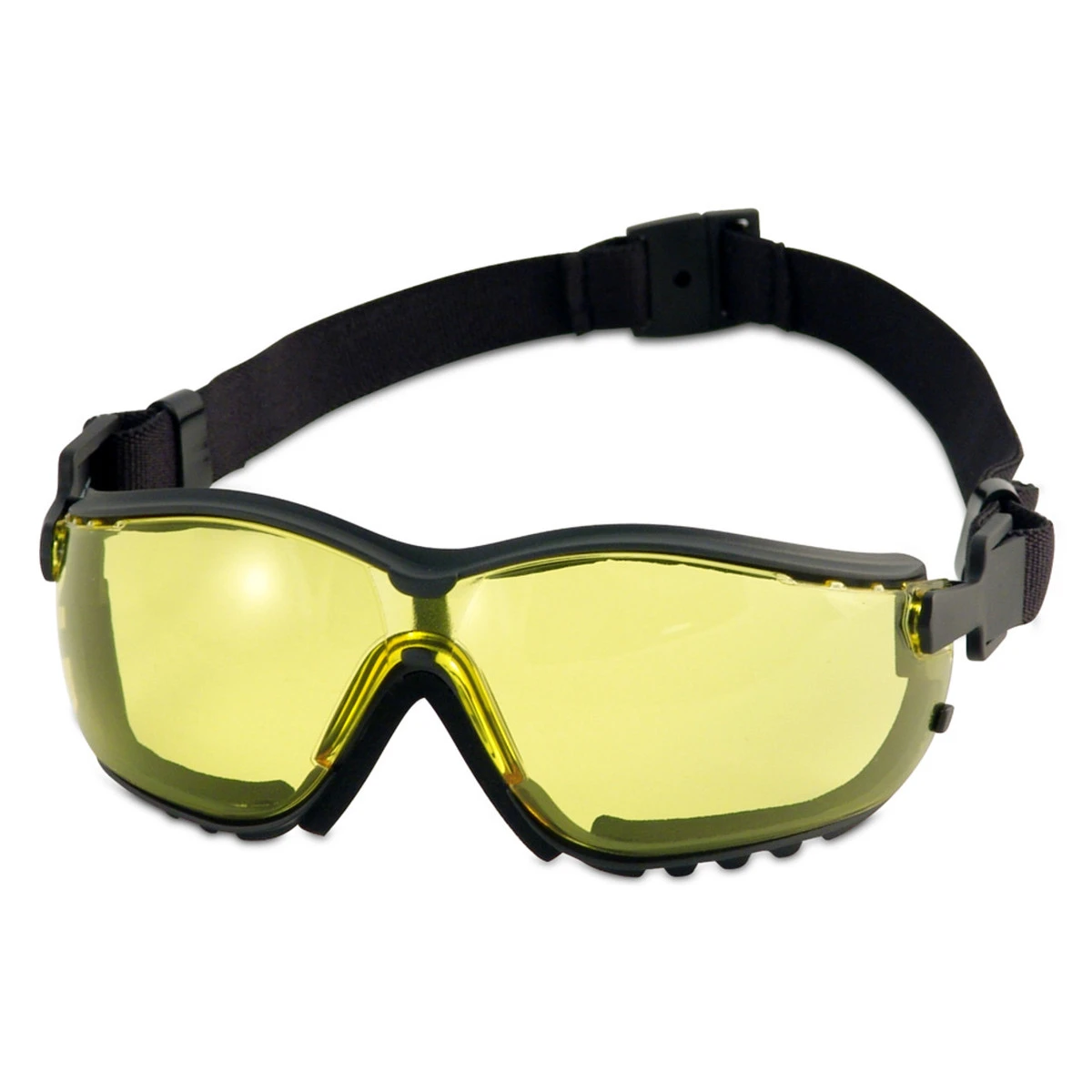The Pyramex V2G Foam Padded Sealed Safety Glasses are ideal for anyone looking for superior protection, comfort, and style. The lenses are vented to increase airflow and feature an amber H2X anti-fog coating. They are curved at a 9.75 base to provide full-side protection. The headband and temples are adjustable via a ratchet system for a perfect fit, and the temples and headband are interchangeable, allowing for various styles and looks. The lens and frame also feature flame-resistant foam padding for added comfort. Additionally, these safety glasses have been tested and passed MIL-PRF-32432 High-Velocity Impact Standards for superior protection.