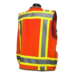 The Radians Heavy-Duty Class 2 Two-Tone Engineer Vest – SV55-2ZGD is made for those in professional field engineering jobs or construction type jobs. It is able to resist the rough working conditions with the heavy duty 300D woven polyester in the front of the vest and the polyester mesh in the back of the vest. There are 8 total pockets available for storage: front flap covered radio pocket, flap covered split pencil pocket, lower front cargo pockets with flagging tape grommets, 2 water bottle/paint can pockets, 2 large two layer inside open pockets. The two tone reflective striping helps you be seen in low light situations and is ANSI/ISEA 107-2015 rated.