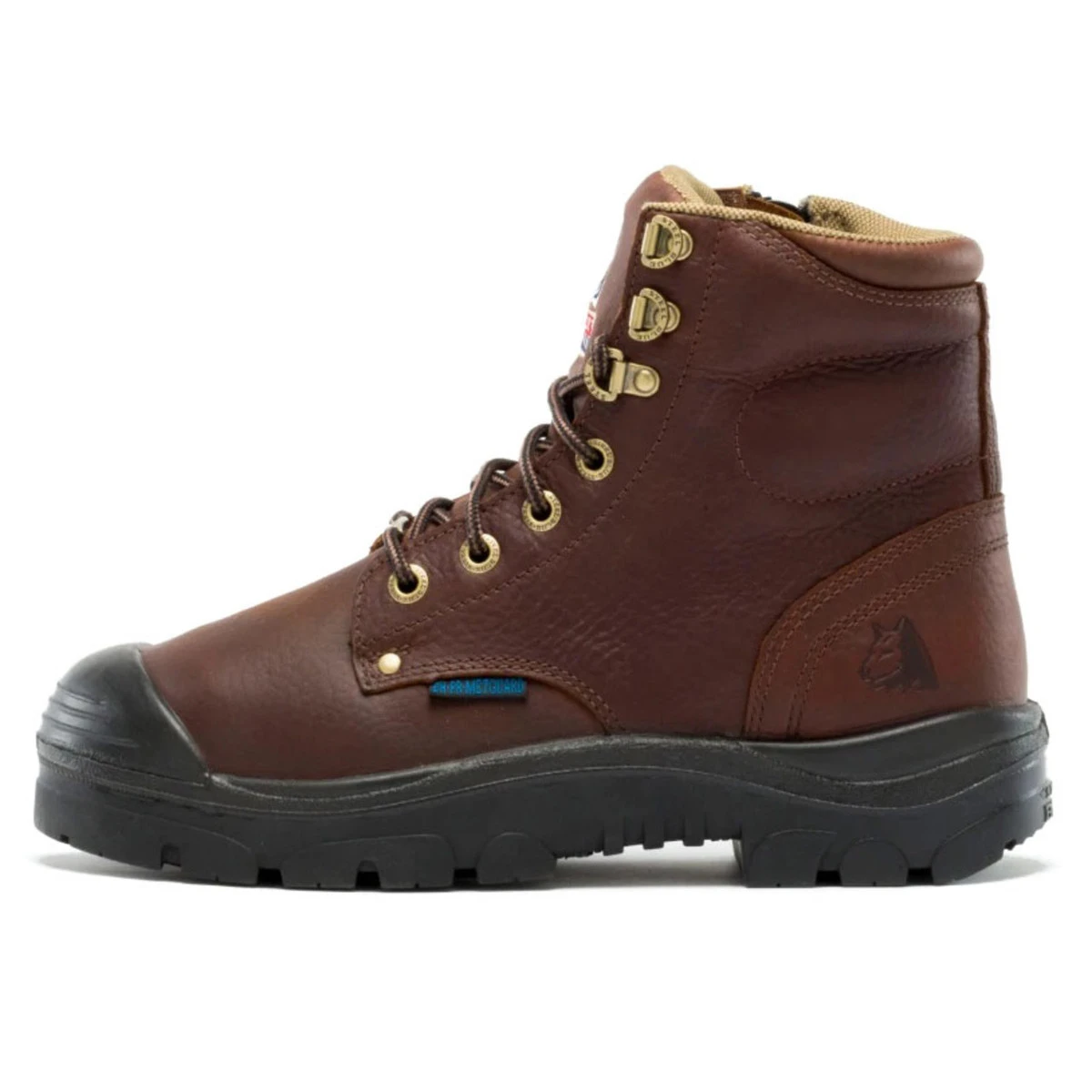 The Argyle Zip: Met / PR Midsole / Bump Cap is packed with safety features, and the padded collar and tongue offer support and all-day comfort. Designed to be laced up for comfort, the side zips offer easy access. Crafted from Oak colored, premium cowhide Leather, this 6-inch Zip Sided Men’s work boot is also Water Resistant. The tough TPU Outsole is heat resistant to 266ºF, combines Electrical Hazard (EH) and Slip Resistant properties, and performs well on below freezing conditions. It also includes an extra tough Penetration Resistant midsole to prevent sharp objects getting through to your foot.
