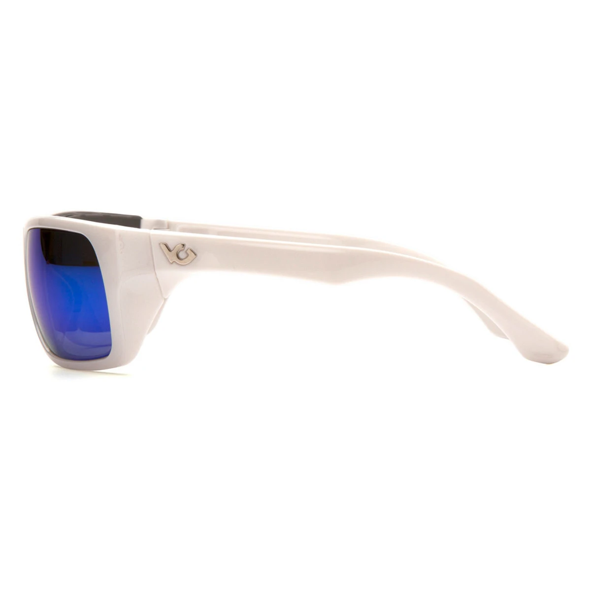 Venture Gear Vallejo White Safety Glasses – Ice Blue Mirror Anti-Fog Lens feature a scratch resistant, anti-fog lens that provides 99% UVA/B/C protection. These glasses have a built-in rubber nosepiece for comfort and a stylish vented full frame to increase air flow. ANSI Z87.1 and EN166 rated.
